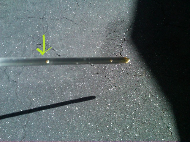 thanks mm! this is exactly what i'm seeing. your judgement is better than mine, with all the streaking, it does seem that the heaviest is where you point out and is the actual level. that's how mine looks, i removed another 16 oz. last night for a total of 24, and it seems about 1/4" above now. i'll do a little more tonight. thank you for going to the trouble of taking the pictures, that was very helpful.