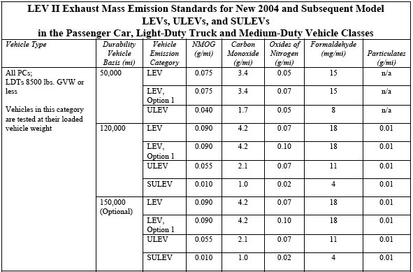 I'm pretty sure this Honda Fit 2010 certificate applies to the 2013 Honda Fit, which is certified to ULEV-II. I know others on this forum besides me consider the Honda Fit a reasonable choice for a car (if not the Prius!), so I thought the emissions might interest others. If I am reading the ARB report correctly, the Fit fits nicely into SULEV except for NMOG, where it is ~ double the allowable maximum (but still only 36% of ULEV II maximum or 22% of LEV II maximum.) For reference, the ARB tiers: