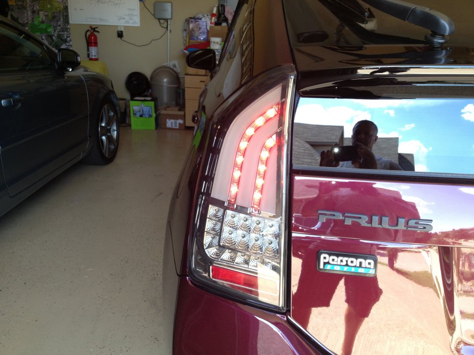 Just installed my new LED tail lights and blacked out name badges. Also installed the shark fin antenna, from Shop Prius.