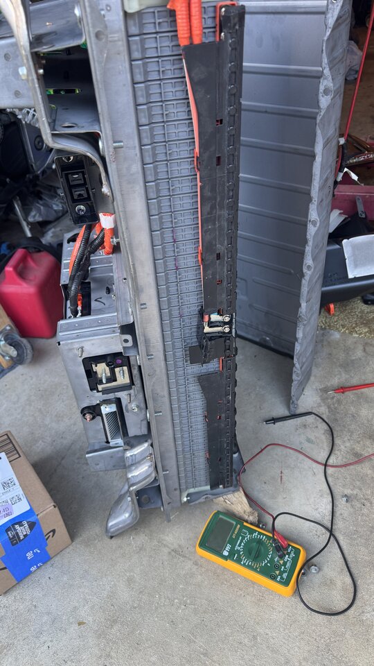 My 2007 GS450H is similar to a Prius except it has 40 battery blades whereas a Prius has 28. I have just installed 40 new blades in my GS450H. Pack looks good according to diagnostic (photo) but getting error code P0A0D. Safety plug was correctly installed but there is almost no voltage at the port. I have discovered there is almost no voltage at the battery terminals the safety port is attached to (photo). When I test these terminals independently they show 150V and 165V respectively. What could be wrong? Thanks