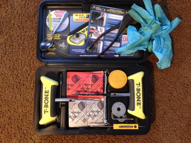 It occurred to me, with my plug repair kit and the bicycle pump in the car, it's possible to even repair on-the-fly, with the tire just pulled off, or even on the car.
