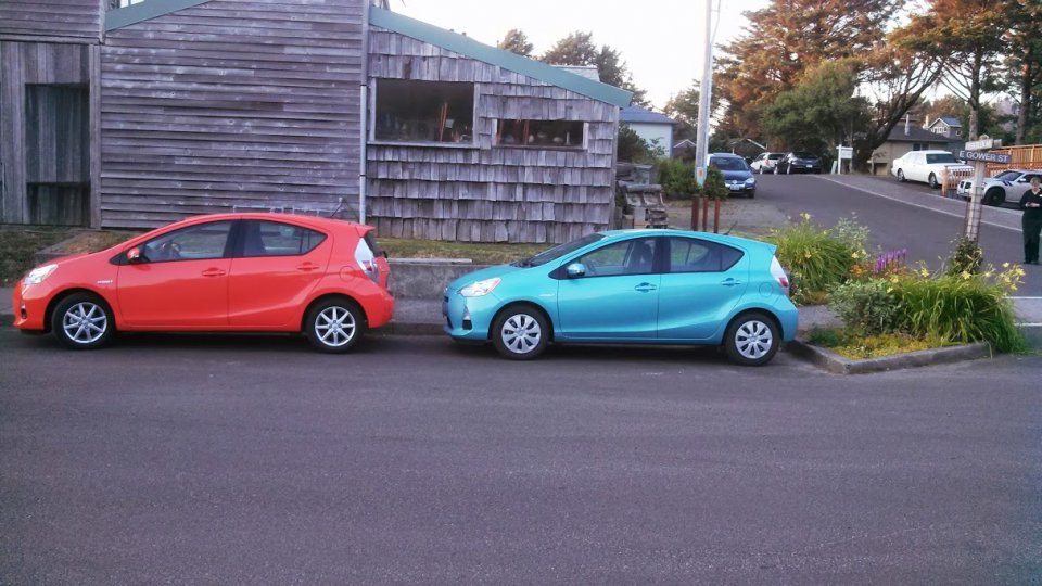 I saw a yellow Prius C at the dealership last week while I was getting my Prius serviced. I didn't even realize it was a 2014. Someone was actually in the process of buying it. It does look really bright. I didn't look on the inside to see if the trim was silver instead of blue. I just assumed it was the same as all the other Prius C cars on the lot.