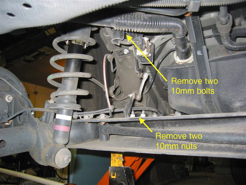 Is that the HID level sensor attached to the left rear axel? This is attached to the axel, the arm goes forward and slides/pivots on the underbody, I think.