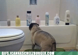 We used to have a Min Pin that could do a front handstand (pawstand)while she peed. Our current Min Pin mix sometimes does a front pawstand when he poops.