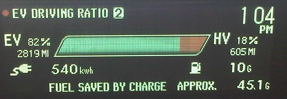 Yea, that's probably the worse it can get for me. Time to work on the next 1,000 miles run. Edit: Volt owners need to average 65% EV ratio to hit 59 MPGe. My PiP did it with 6% EV ratio, wow!