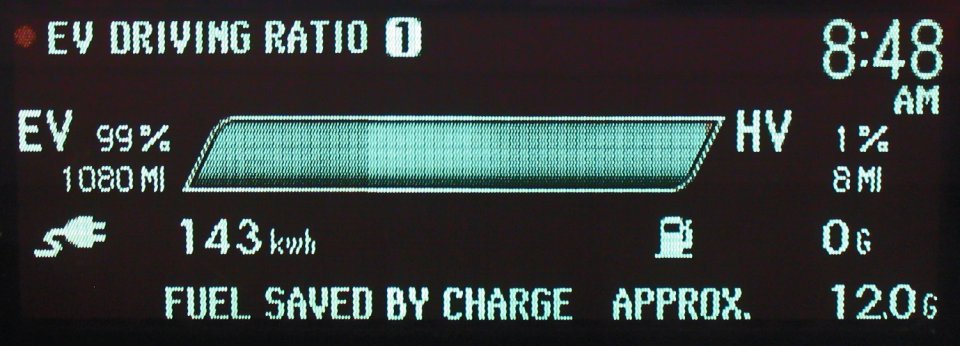 Hmmmmmmmmmmmmmmmmmmmmm/? your right, never gave it a thought. Is that not cheating to fudge the numbers? As soon as I have recharged my battery, I just might go for a drive and use up all my electric and use 30 miles of gas, Since my other number is posted at least if I screw up I'm covered. I will post later this afternoon. Thanks, fortywok for the tip! Remember fortywok, Total miles is what really matters in the end, And you are really ahead buy a long ways!! Great Job!!