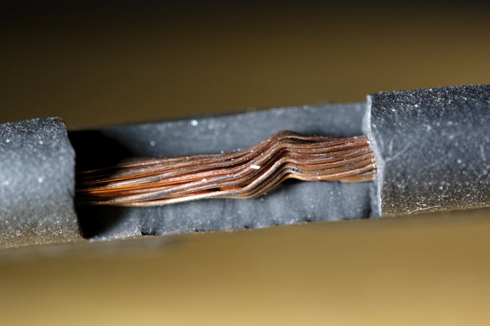 Ok, here is something interesting... I found the original plug with the suspected severed wire inside. True enough, one side sort of snapped upwards and had small burns on the ends, while the other side was unusually deformed. Could they have been that way from the factory originally? At first, I started slicing lengthwise after the ribbed support. Since I found nothing there, I took off the rubber support and saw a small bulge obscured by the ribbed support near the body of the plug. When I sliced it open, I saw the cut and but relieved it didn't escalate into the adjacent wires to become a full blown short. The other side