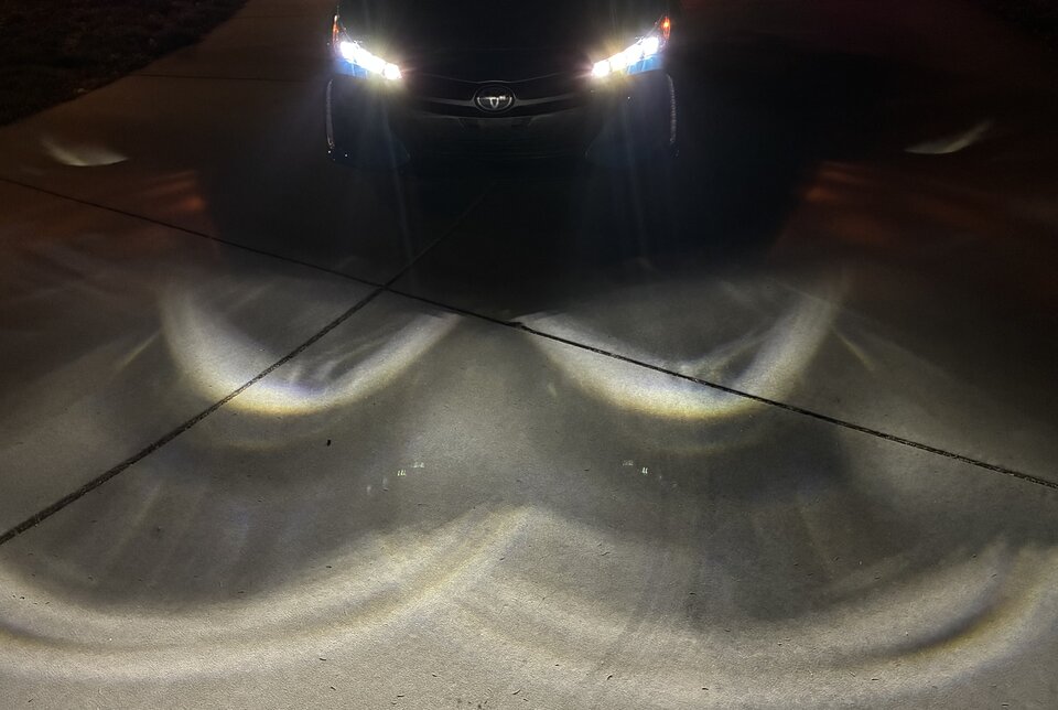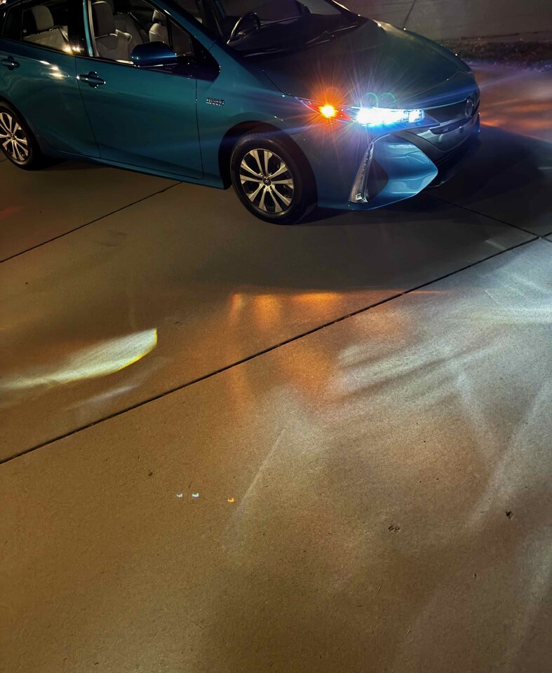 Hey everyone, I recently purchased a 2020 Prius Prime CPO from my local Toyota dealer. I noticed when I was driving on the highway that the headlights seem to be projecting to the side. I took some pictures when I got home. I plan on taking it to the dealer for them to look at but I wanted to get a quick sanity check on what the headlight pattern on the Prime is supposed to look like, or if anyone has an idea of what could be causing this.